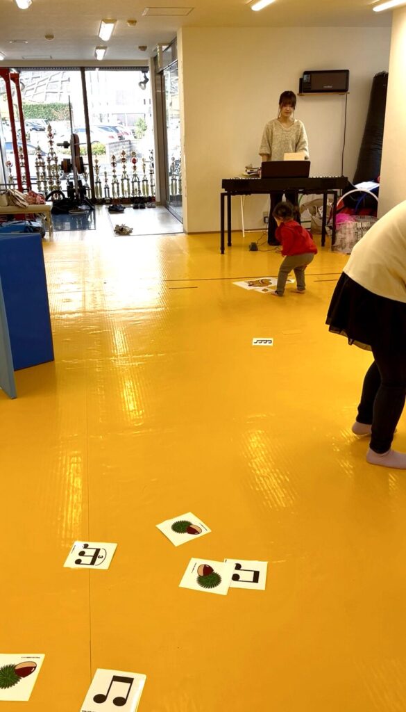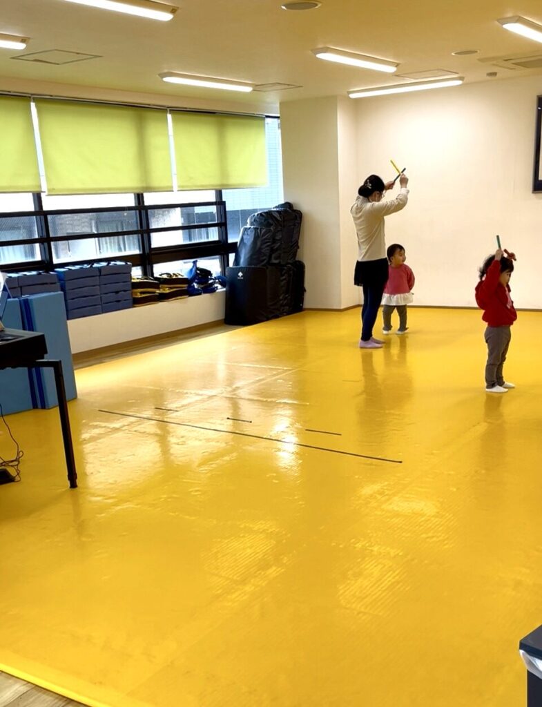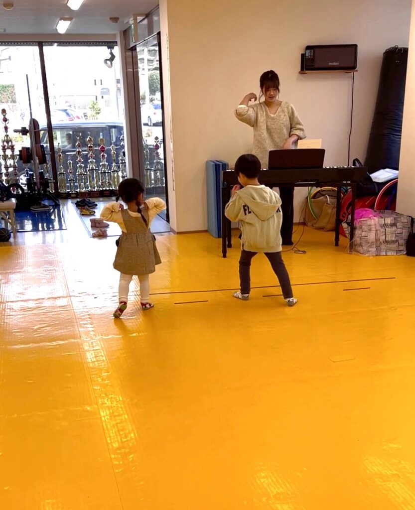 楽しみながら、リズムと運動機能の両方が育っています。
